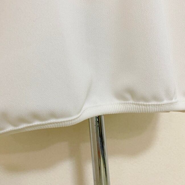 ネックと裾には同カラーのフライス生地でリブパイピング始末に。全体的に自然な丸みを帯びたシルエットに仕立てています。