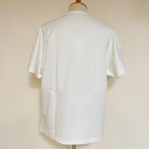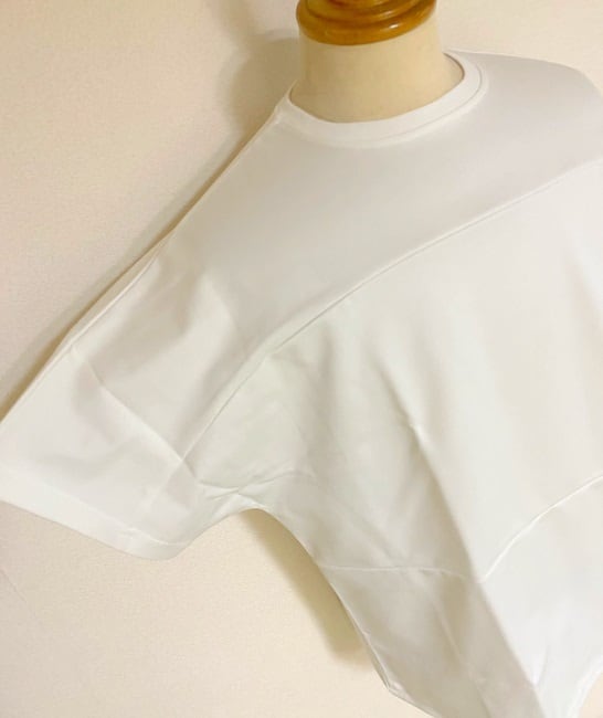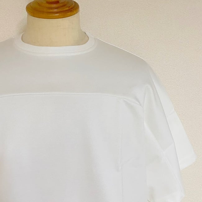 白でも透けにくく、ハリと艶を持ったポンチ素材のカットソー。