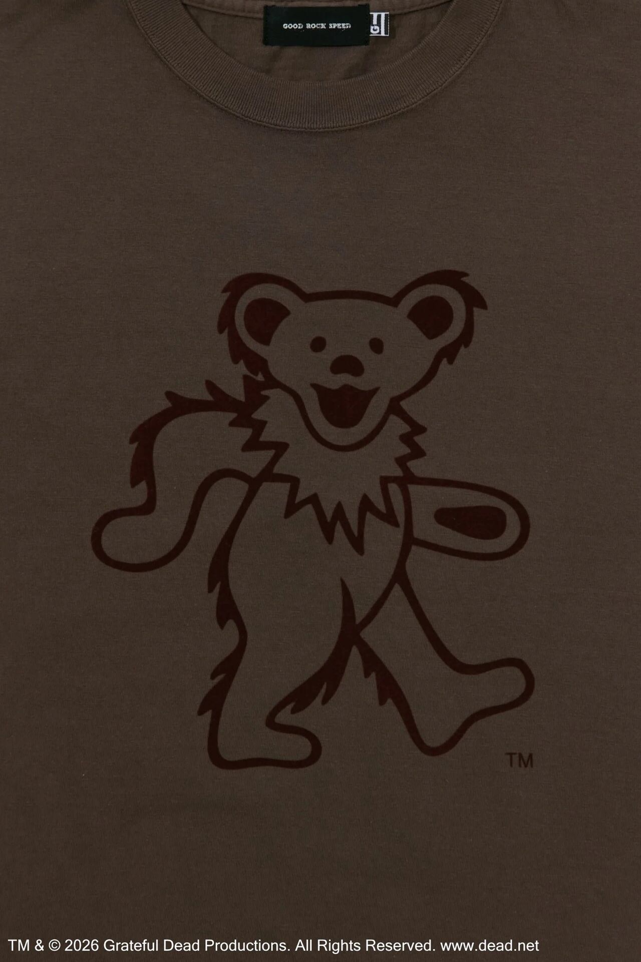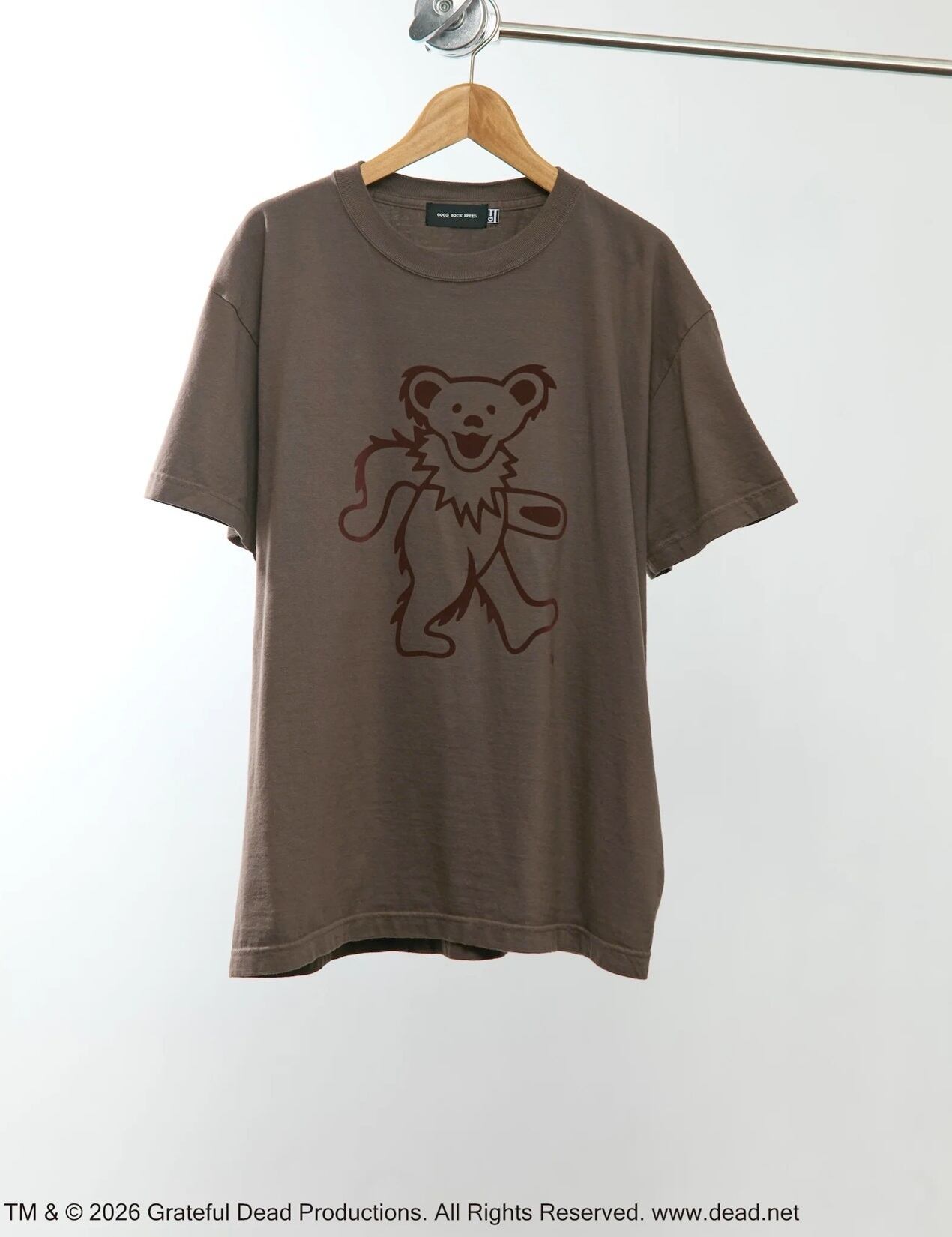 Greatful Dead(グレイトフル・デッド)を象徴する「Dancing Bear」をモチーフにしたTシャツ。プリントにはフロッキープリントを採用し、起毛感のある質感がグラフィックに立体感とヴィンテージライクな表情を与えます。
