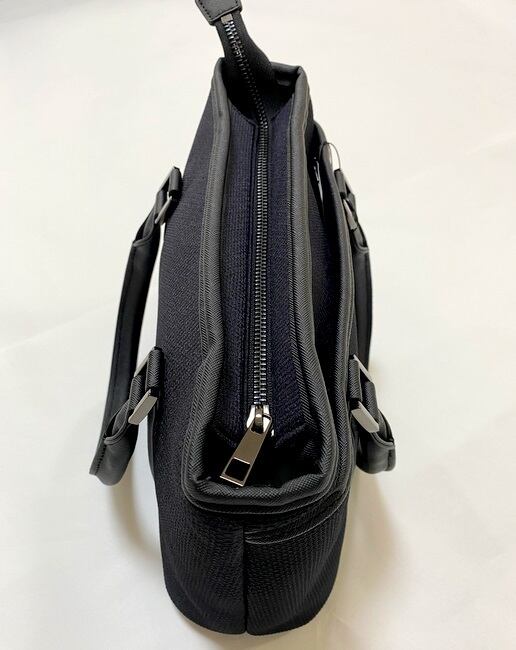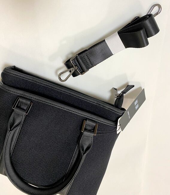 充実した2WAY仕様 — マチ幅があり、見た目からは想像できない収納力と、使いやすいポケット付き。ショルダーストラップで肩掛けもできます。