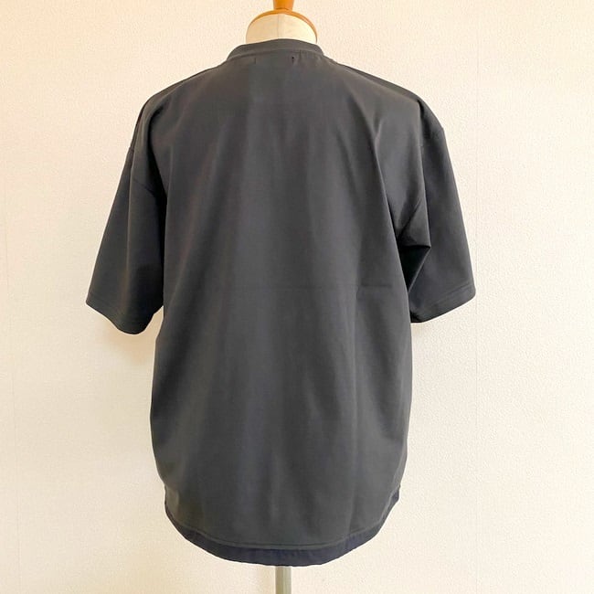 ポケット部分にカットソー部分と同色の布帛生地を使用したデザインカットソー。裾にはドローコードが入っているので、タックイン風の着こなしも楽しめるようになっています。