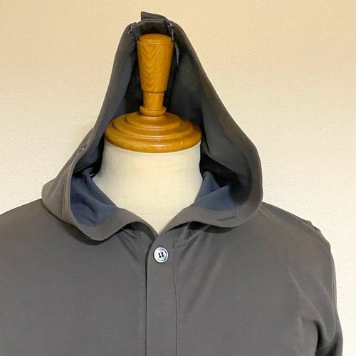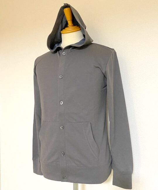 カジュアルな見た目でありながら吸水速乾性・クーリング性・保温性等の機能がある高機能商品を使用しています。おおよそカットソー素材に求められる機能性を高い次元で兼ね備えたエアレットプロ素材を、個性的なスタイルが楽しめる2WAYフードのカーディガンに仕上げています。