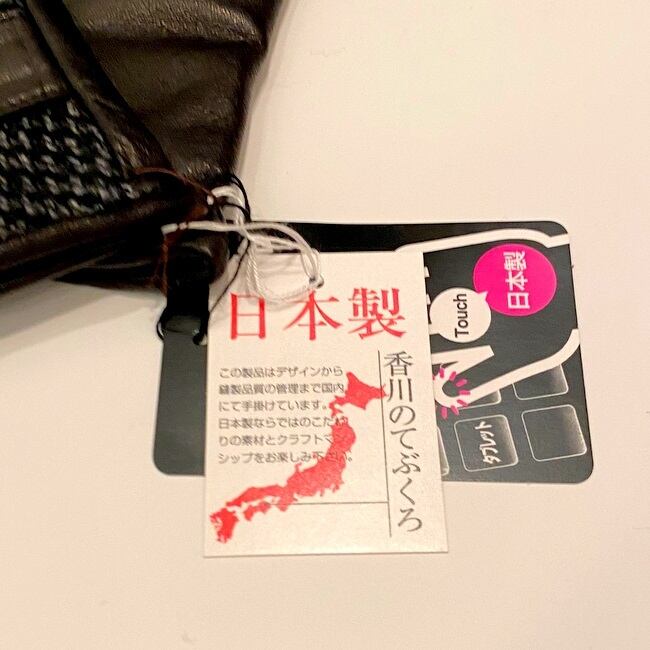 カウレザーを使用したグローブ。人差し指と親指がスマートフォンやタブレットのタッチパネルに対応した仕様になっています。日本製