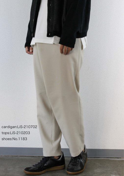 シャリ感のあるサラッとした肌触り、通気性の良い中肉厚のポリエステル素材を使用したラップパンツ。腰回りに余裕を持たせたテーパードシルエットを採用しています。腰に巻き付けるようなラップ風ディテールを効かせ、使いやすくも遊び心を感じるデザインパンツ。天然素材のようなナチュラルなルックスでシーズンを通して活躍する1本。日本製。