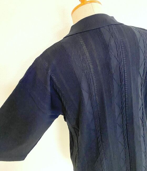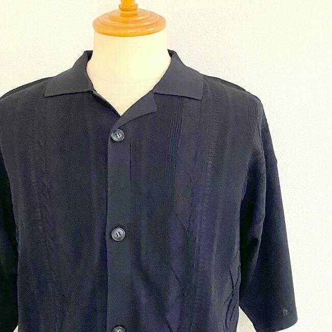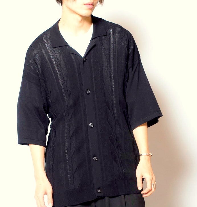 接触冷感のレーヨンナイロンの糸を用いて編み立てた上品で艶やかな光沢感が魅力のハイゲージニットシャツ。トレンド感のあるオーバーショルダーのシルエットでありながら、柔らかな風合いを持つニット素材を採用したことで、リラックス感と品格のある雰囲気をバランス良く両立させています。