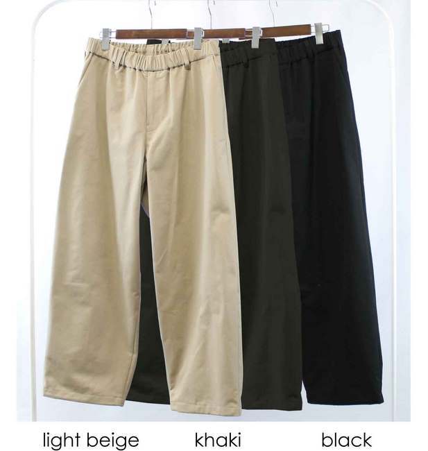 裾にドローコードを仕込んだイージーパンツ。ウエストはゴム入りでストレスフリー。ゆったりとしたシルエットながら、肉厚でハリのあるコットン生地を使っているのできちんとした印象で綺麗めに着こなせる1本です。裾に配したコードを調整することでシルエットに変化を加えて着こなすことが可能です。