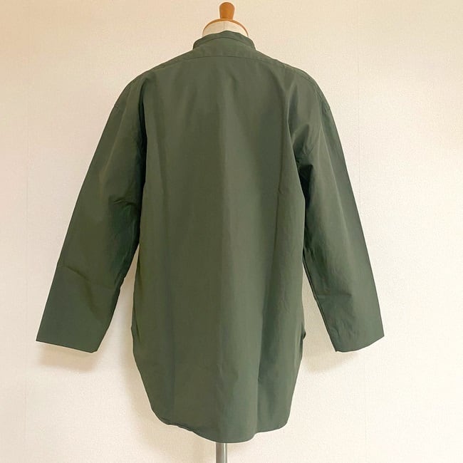 スリーピングシャツをモチーフにした、Aラインでドロップショルダーのかなりゆったりとしたシルエット。大きめなボタンが着こなしに良いアクセントを与えてくれます。