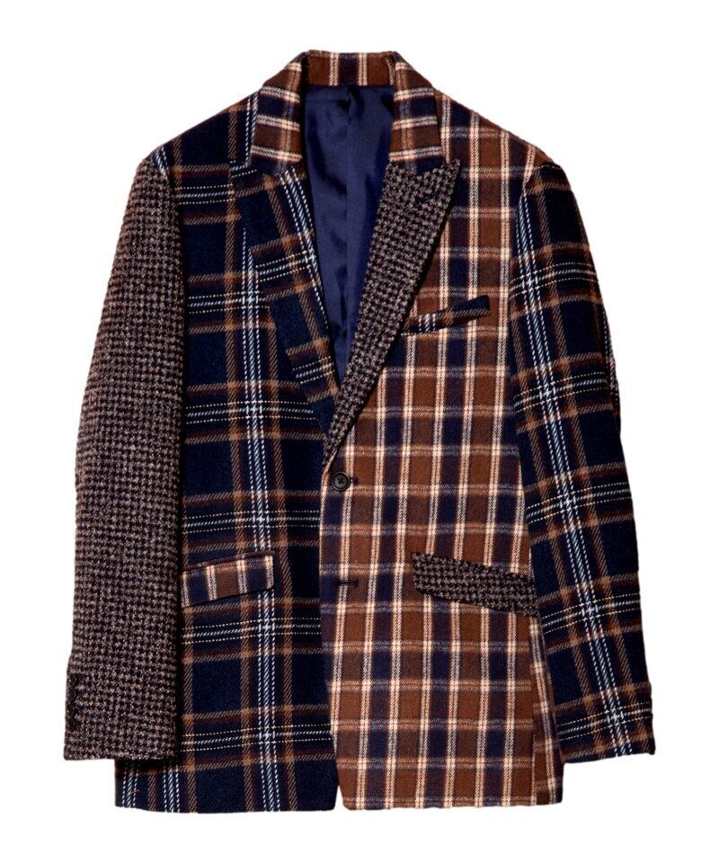 テーラードジャケットを構築するパーツをブロック毎に生地を切り替えて遊び心溢れるパッチワークライクなジャケットを作成。