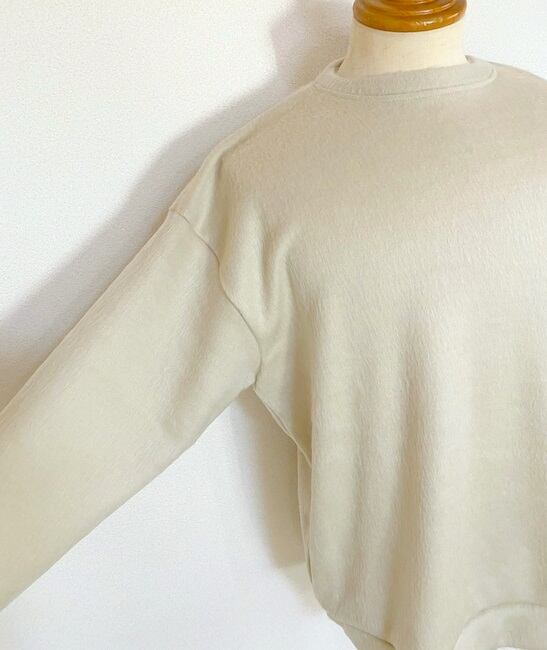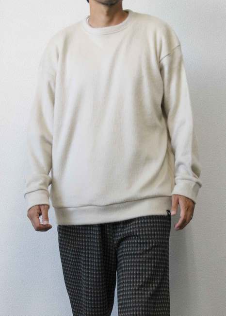 ウールアクリルの生地に起毛をかけ、ふんわりとしたボリューム感を出した素材を採用したクルーネックカットソーです。合わせるボトムを選ばないシンプルなデザイン。軽くて着心地もよく、オーバーサイズ過ぎないサイズ感に設定し、重ね着もしやすいシルエットです。