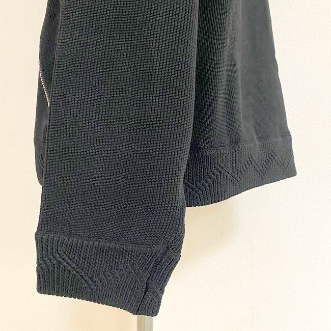 身頃の編み地には片畦編みを採用し、MA-1のデザインとマッチする立体的でふっくらとしたフォルムが特徴。襟、袖、裾のリブにはジグザグとした装飾的な模様編みを施し、ミニマルなデザインのオリジナリティ溢れるアクセントとしています。
