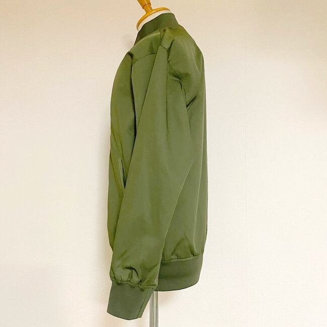 張り感のあるTC素材に撥水加工を施した生地を使用したリブブルゾン。襟、袖口、裾をリブに切り替えたジップアップタイプの軽アウター。MA-1をベースに丸みを抑え、着丈も出しつつ、シンプルにスッキリした印象に仕上げています。薄くても強度もあり、梅雨時期も活躍する1枚です。