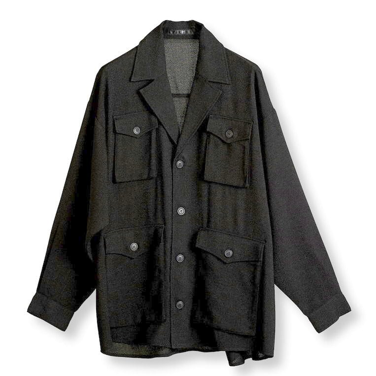 サファリジャケット由来のユーティリティなマルチポケットに、サイドからもアクセス可能なスラッシュポケットで実用的なアレンジをプラスしています。