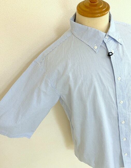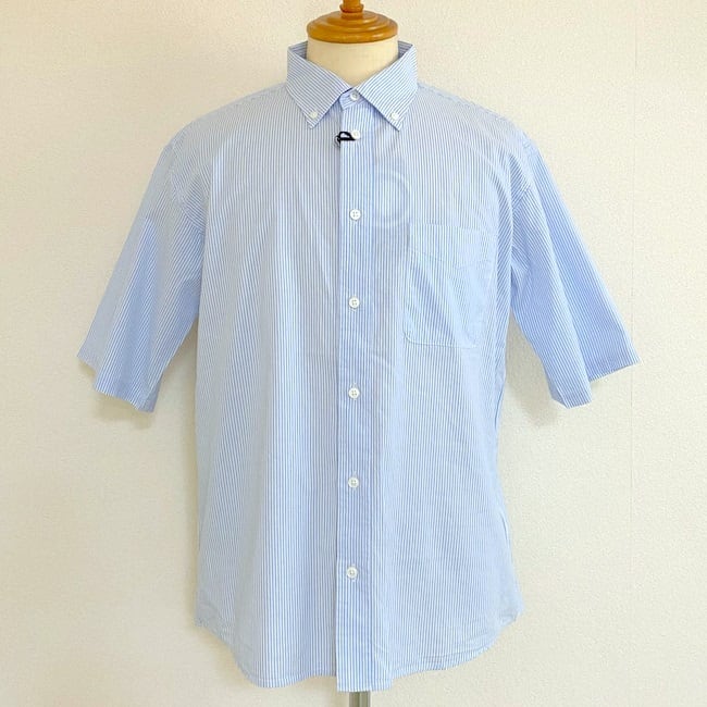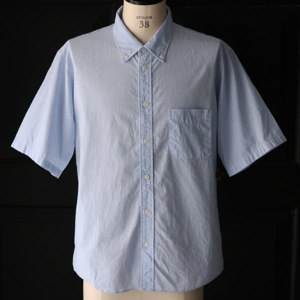 One Wash Button Down S/S Tapered Shirts Sax Stripe Broad