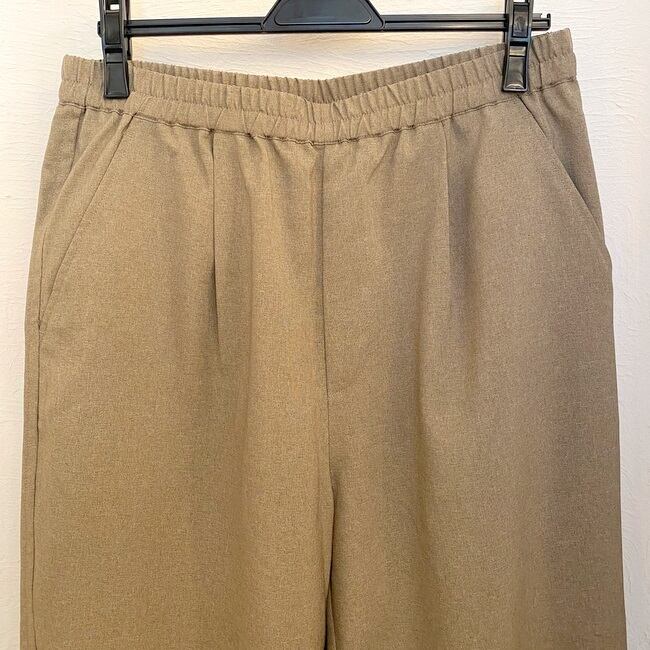 ワンタックの入ったゆるめなフォルムのテーパードシルエットで8~9分丈くらいのイメージで仕立てています。