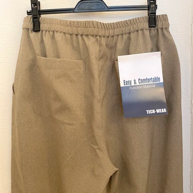 吸水速乾性がありながらナチュラルストレッチ・イージーケア性も兼ね備えたマルチファンクション素材「テックトロピカル」を使用したクロップド丈のイージーパンツ。見た目には平織りのコットンリネン天然素材に見えますが、ポリエステル100%のテックウェア。