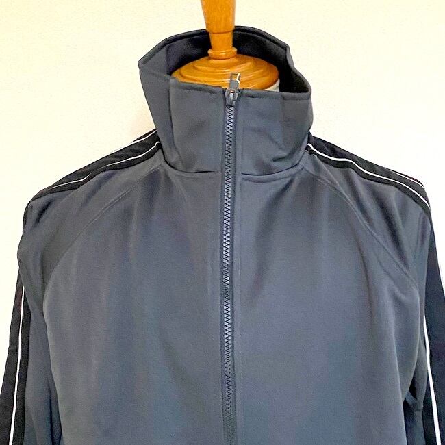 光沢感のあるポリエステルジャージー素材を使用したトラックジャケット。